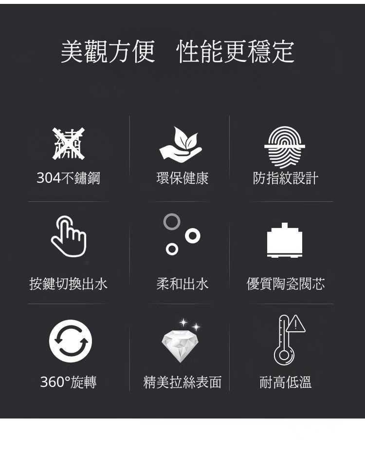 (1)採用精密的陶瓷閥芯,硬度大,陶瓷閥芯質量高、手感舒適輕快,操作順暢省力,耐久不漏水。