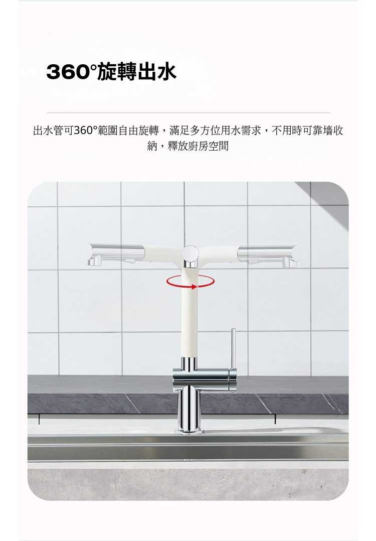 (2)龍頭出水桿360°旋轉搖擺,滿足多方位需求