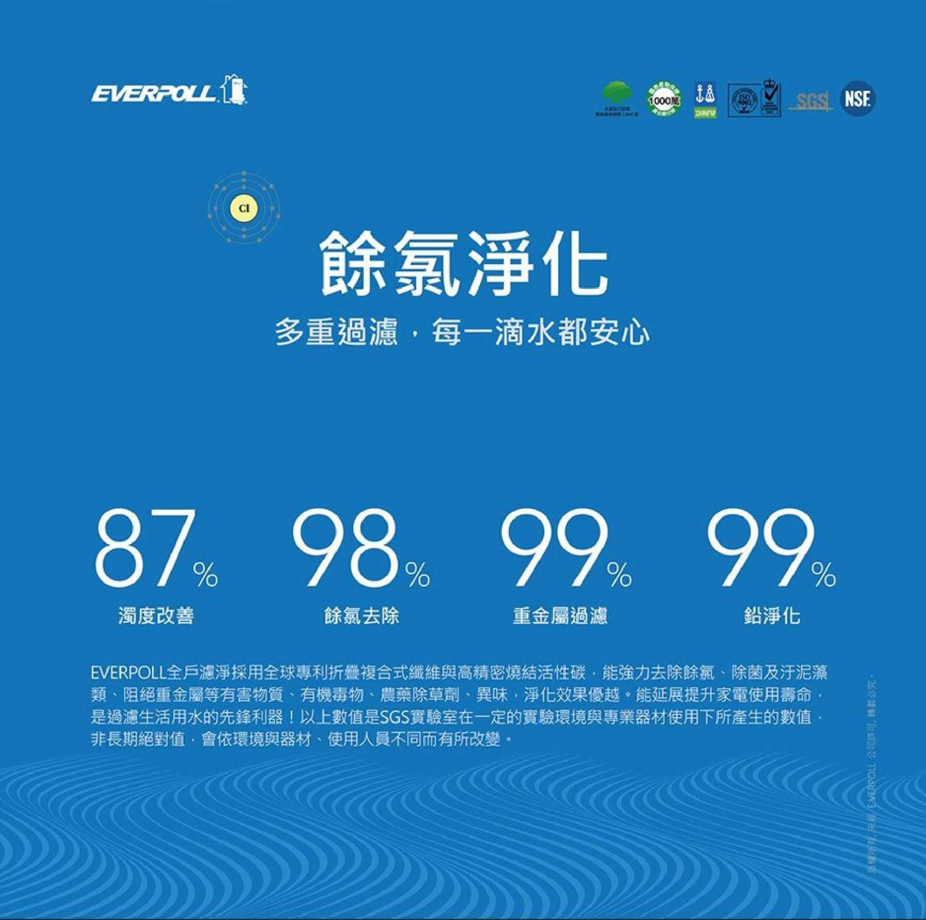 ✅多重過濾有效餘氯達98%