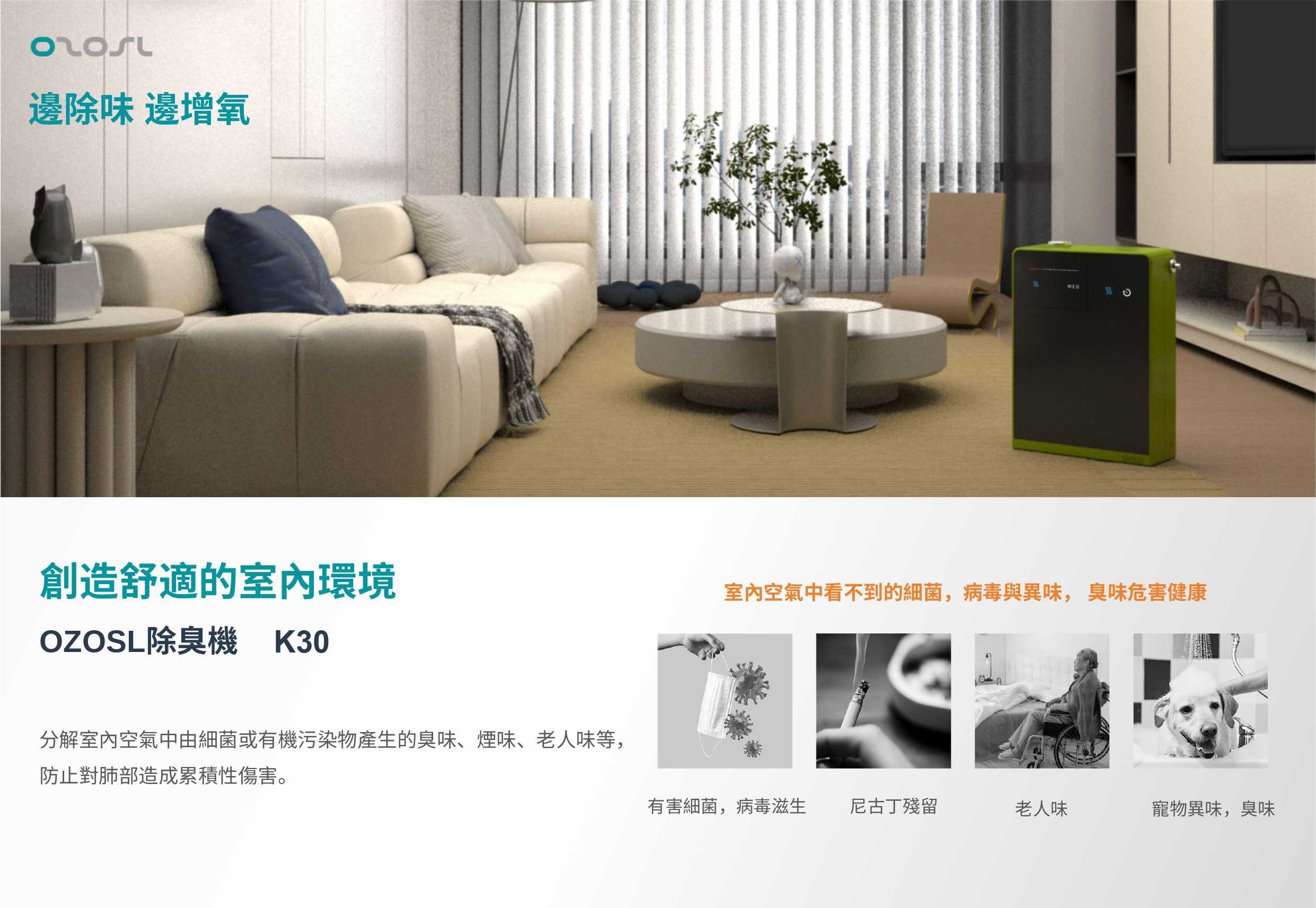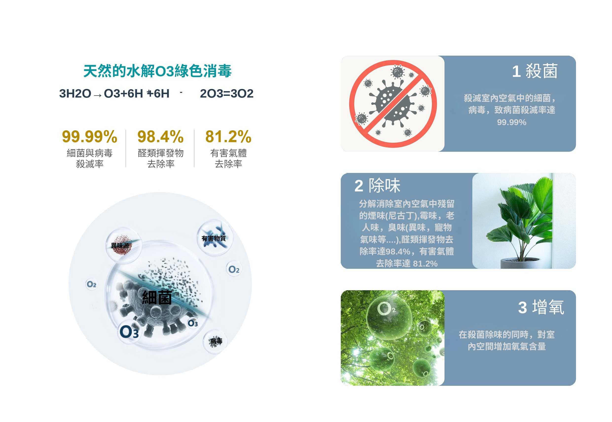 分解室內空氣中由細菌或有機污染物產生的臭味、煙味、老人味等,
