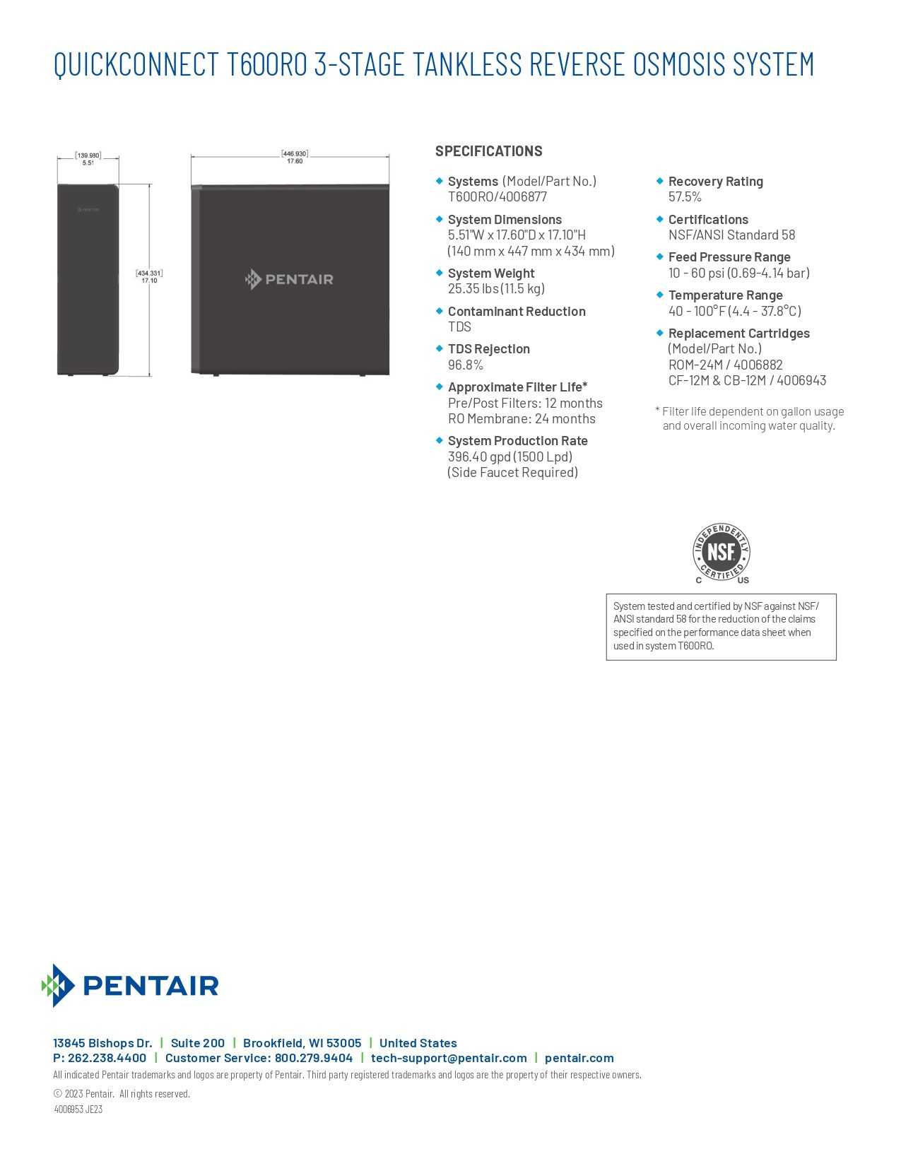Pentair OMNIFilter QuickConnect 無水箱逆滲透淨水器是一款設計時尚現代的緊湊型廚下式無水箱逆滲透淨水系統。